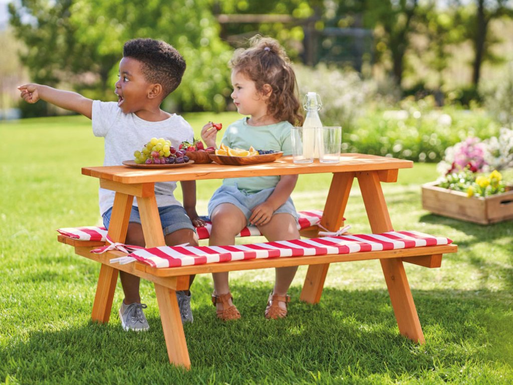Veľmi pekná detská záhradná lavica so stolom z kvalitného a masívneho dreva vrátane podsedákov. Táto detská drevená záhradná lavica so stolom len u nás skladom, za najnižšiu cenu a na okamžité odoslanie. Skvelá cena dopravy do siete výdajných miest Balíkovňa (pobočky Sazka)