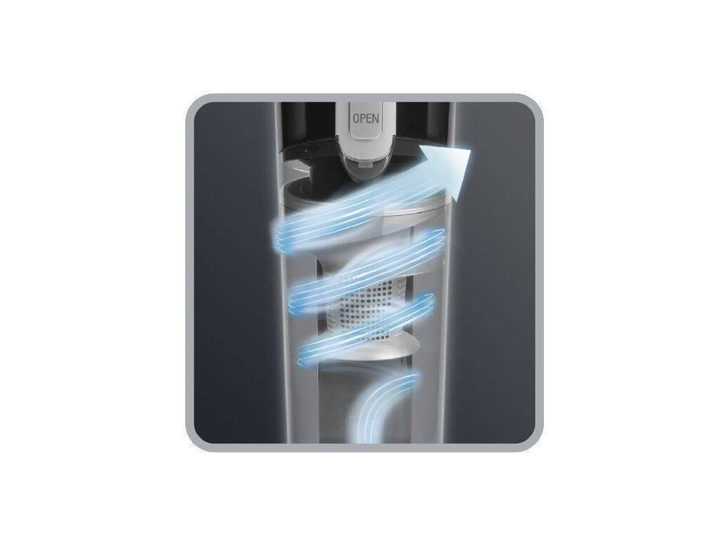Vysávač je vybavený účinnou cyklónovou technológiou , ktorá zaisťuje vysoký sací výkon. Nečistoty sú efektívne zachytávané v 0,65 litrovej nádobke, ktorú je možné ľahko vyprázdniť bez priameho kontaktu so špinou. Integrovaný umývateľný penový filter prispieva k dlhodobému udržaniu výkonu, stačí ho pravidelne umývať.