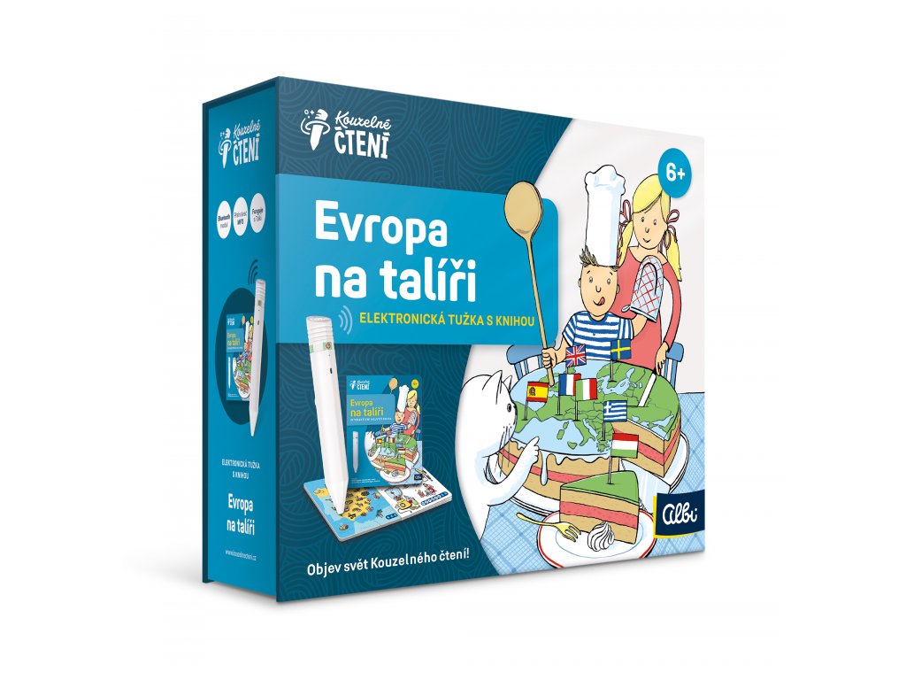 Balenie Albi elektronickej ceruzky s interaktívnou knihou Európa na tanieri. Vydajte sa na cestu za poznaním s týmto unikátnym výukovým systémom. Albi ceruzka 2.0 prináša nové vylepšenia na čele so zabudovaným bluetooth pre pripojenie bezdrôtových slúchadiel a repráčku. Nová Albi ceruzka 2.0 je kompatibilná so všetkými knižkami z edície Kúzelné čítanie.