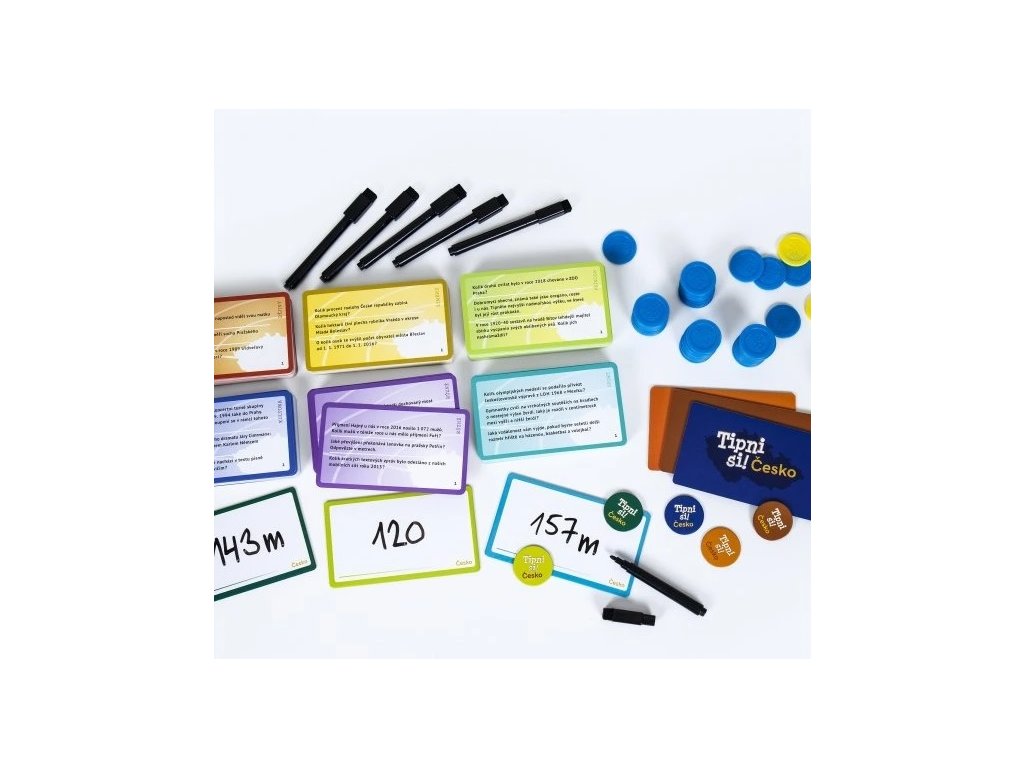 V tejto jedinečnej párty hre na vás čaká 1188 otázok rozdelených do 6 okruhov: Zemepis, Dejiny, Kultúra, Príroda, Šport a Rôzne. Týmto spôsobom si každý nájde oblasť, v ktorej môže excelovať. A čo viac, Tipni si Česko je možné skombinovať so základnou hrou Tipni si, čo ešte viac rozšíri možnosti zábavy.