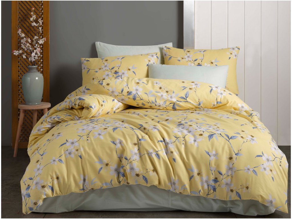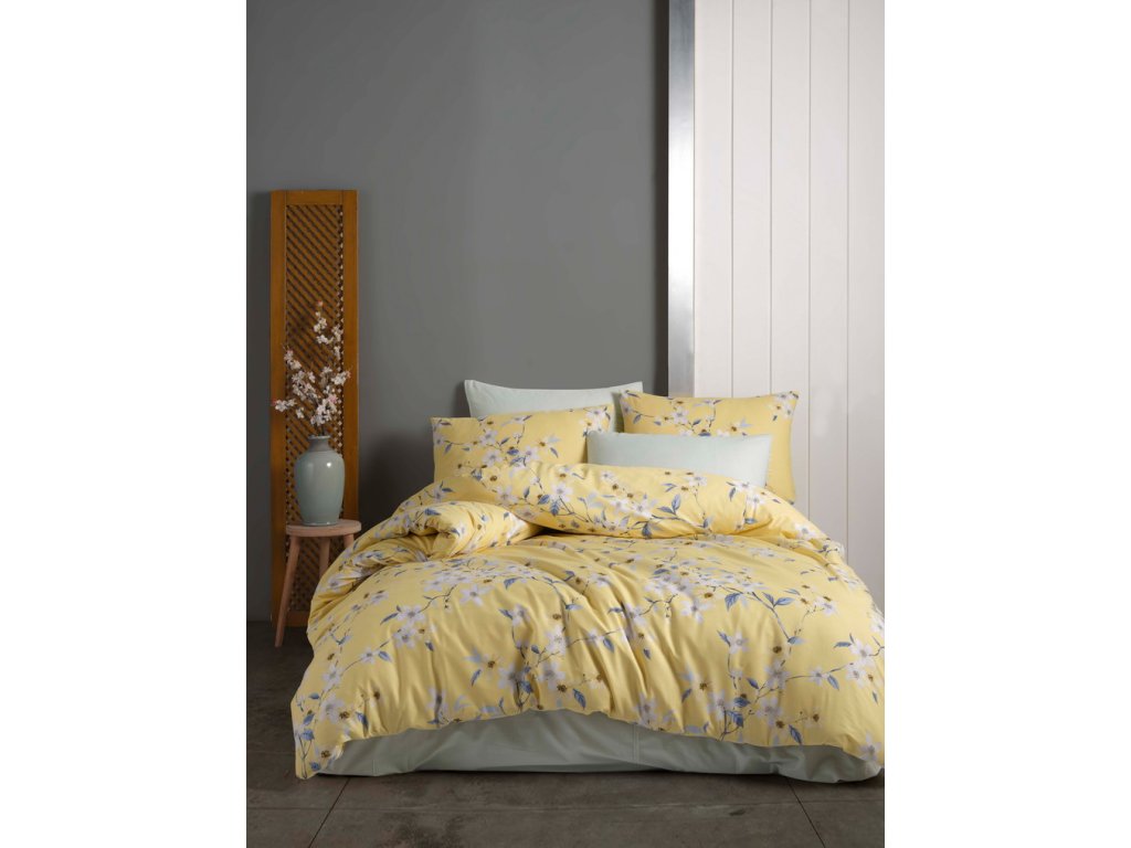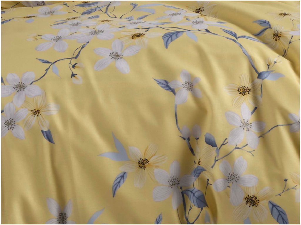Moderné obliečky zo 100% bavlny Renforcé. Kvetinový vzor tvorený jemnými jazmínovými kvetmi na žltom podklade. Vďaka vášmu plákadlu si tento jazmín môžete ovoňať ako budete chcieť a svieži závan vás pohladí po tvári aj po tele, akonáhle vstúpite do spálne. A keď sa uložíte na lôžko, možno nielen vôňa vás bude nežne hladkať...