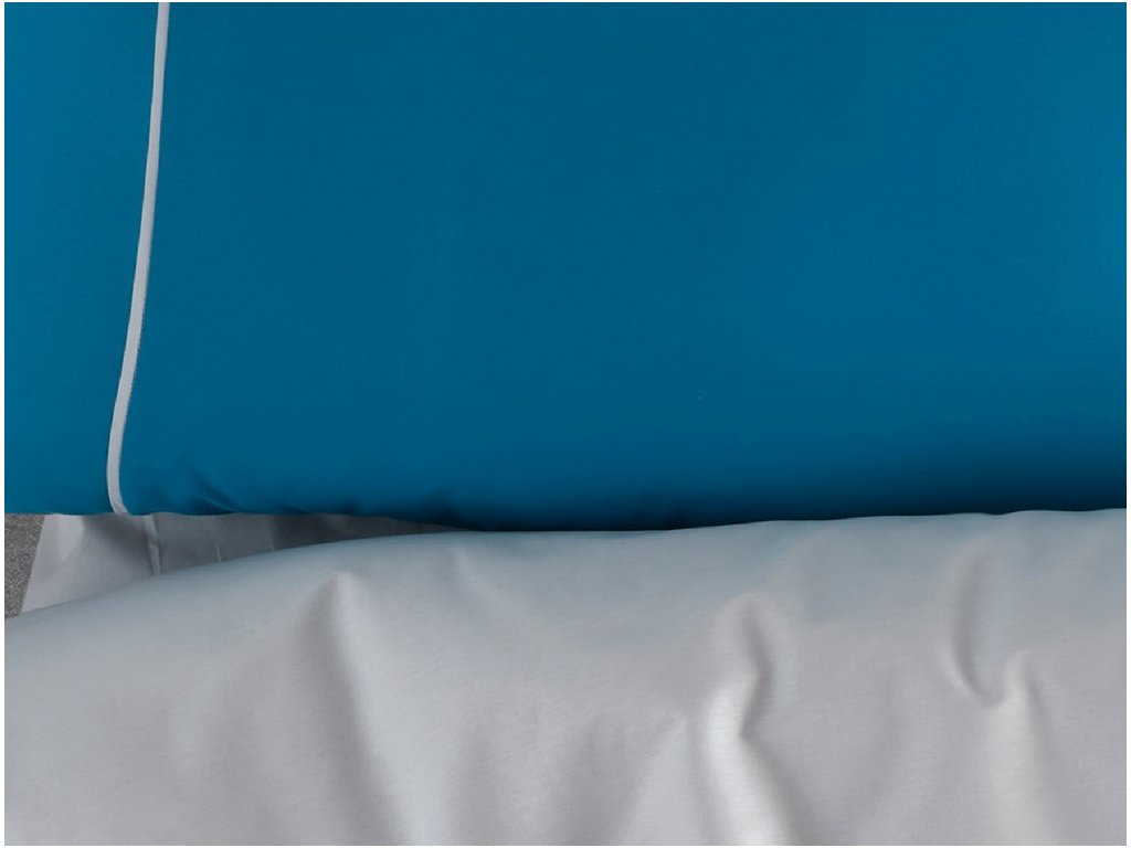 Moderné a svieže obliečky zo 100% bavlny Renforcé. Nevšedne nápadité hladké, jednofarebné, napriek tomu dvojfarebné obliečky. Oku lahodiaca farebná kombinácia, ktorá poteší ako ženy, tak mužov. Obliečka na perinu je z jednej strany modrá, z druhej biela. Vankúše sú z oboch strán modré s elegantným bielym prúžkom.