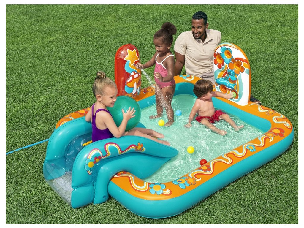 Zažite nekonečnú zábavu s Bestway Retro Groove Hracie centrum ! Tento unikátny retro štýlový hrací bazén zaručuje nezabudnuteľné chvíle pre deti od 2 rokov. V horúcich letných dňoch sa deti môžu osviežiť pod osviežujúcim vodným rozprašovačom, ktorý sa ľahko pripojí k záhradnej hadici. Navyše si zamilujú vzrušujúcu, farebnú šmykľavku, ktorá je bezpečne pripevnená k dnu bazéna pre väčšiu stabilitu a bezpečnosť.