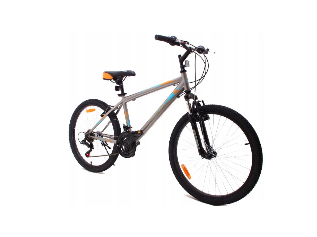 Tento veľmi pekný horský bicykel je vhodný pre deti od 8 do 12 rokov alebo výšky postavy 135 - 155 cm. 24-palcové kolesá a predné a zadné brzdy typu "V". Bicykel je opatrený 18 stupňovou prehadzovačkou (3x6). S nastaviteľným sedlom a riadidlami môže tento detský bicykel s dieťaťom rásť.