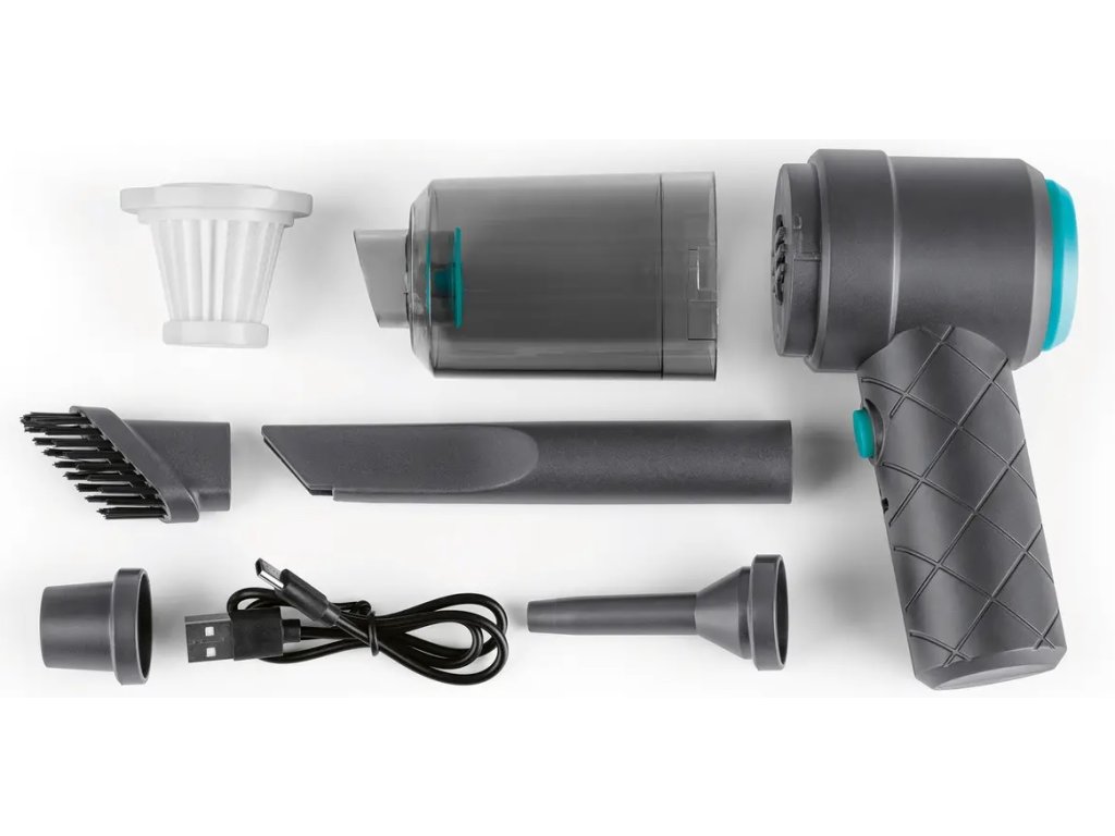 Vysávač je vybavený praktickou sacou a fúkacou funkciou, čo znamená, že nielenže vysaje omrvinky, prach a zvieracie chlpy, ale tiež vyfúka nečistoty z ťažko prístupných miest. To z neho robí ideálneho pomocníka na upratovanie interiérov áut, klávesníc, pracovných plôch a mnohých ďalších miest.
