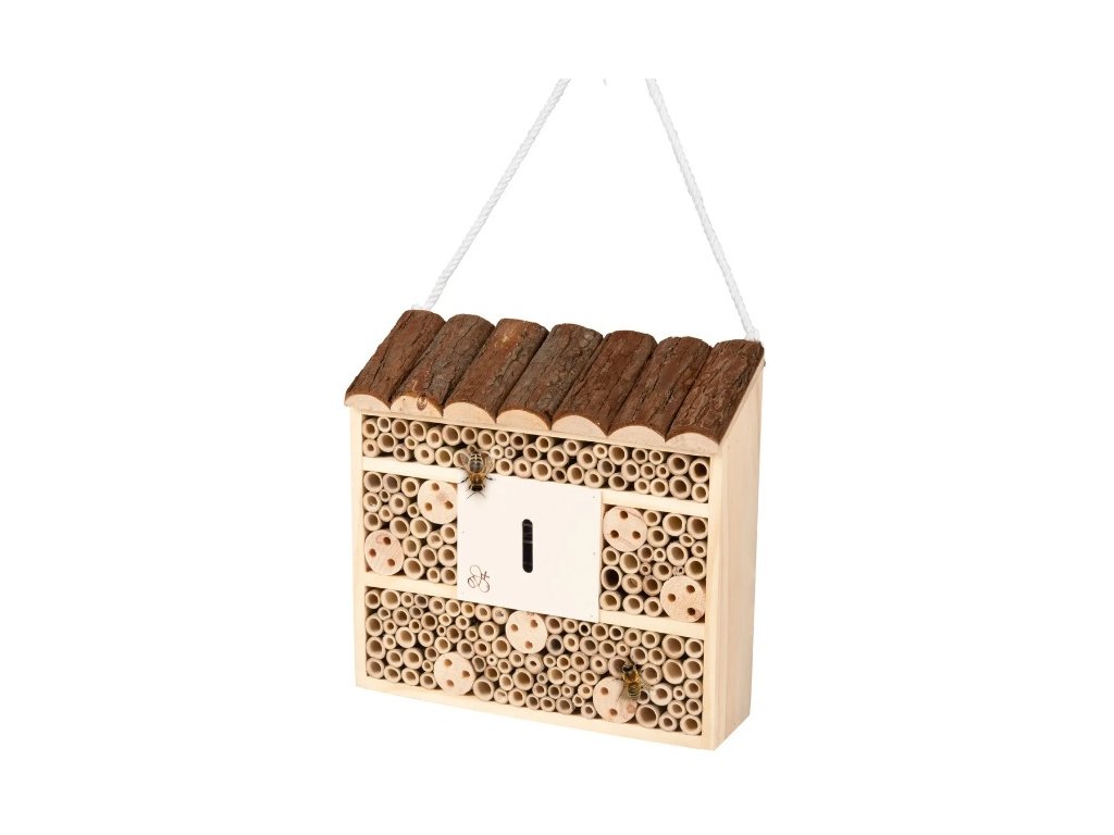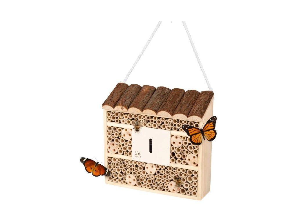 Jednoduchá inštalácia: Vďaka praktickej závesnej šnúrke môžete hmyzí domček jednoducho umiestniť kamkoľvek vo vašej záhrade, kde bude mať hmyz pokoj a bezpečie.