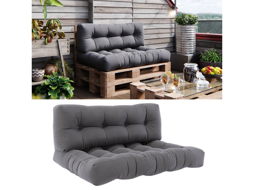 Sada sa skladá z veľkého sedadla a dvoch samostatných opierok, teda vankúšov. Všetky vankúše sú obzvlášť pohodlné na sedenie vďaka kvalitnému polstrovaniu s hrúbkou 16 cm. Vankúše sú navyše vyrobené z polyesterového poťahu, vďaka čomu sú veľmi odolné, a preto sú úplne vhodné na vonkajšie použitie.