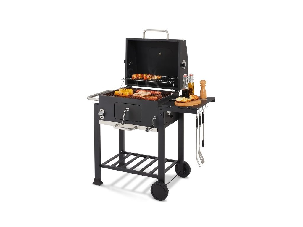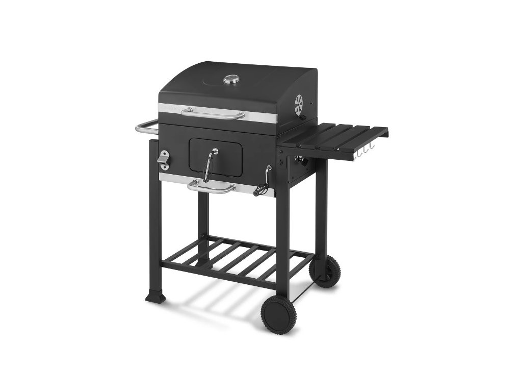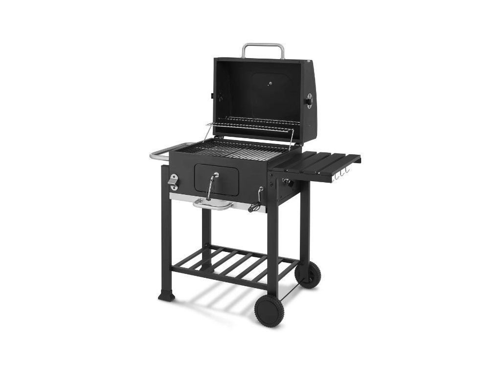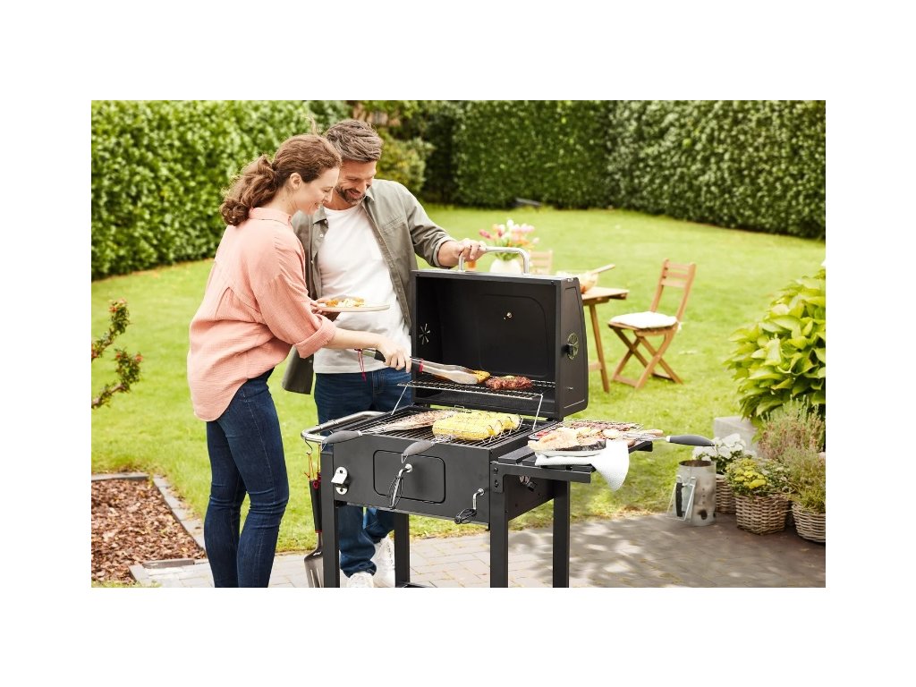 Optimálna Regulácia Teploty: Vďaka 4 vetracím zarážkam a pozinkovanej mise s možnosťou plynulého nastavenia výšky uhlia získate perfektnú kontrolu nad teplotou grilovania. Výklopné veko s teplomerom vám umožní udržať stálu teplotu pre ideálnu prípravu vašich pokrmov.