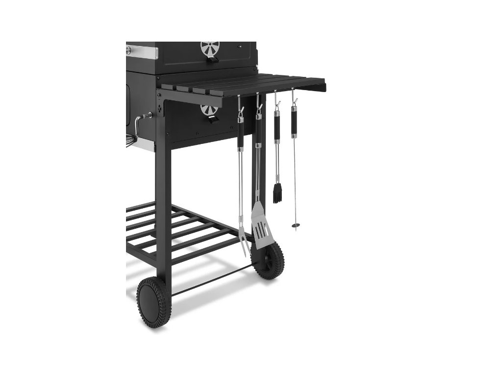 - Sklopná bočná odkladacia plocha so 4 háčikmi na grilovacie náradie