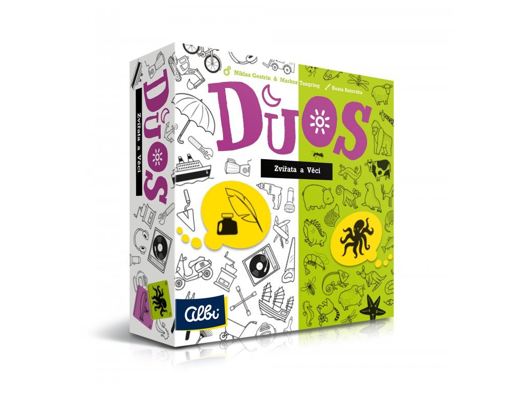 Duos - Zvieratá a Veci je rodinná hra, v ktorej vyberáte páry, ktoré sa k sebe hodia. Každé kolo musíte zvoliť štyri páry z dvanástich náhodne vyložených kariet a môžete len dúfať, že vyberiete tie isté ako rozprávač. Znie to jednoducho? Uvidíte, ako vám to pôjde!