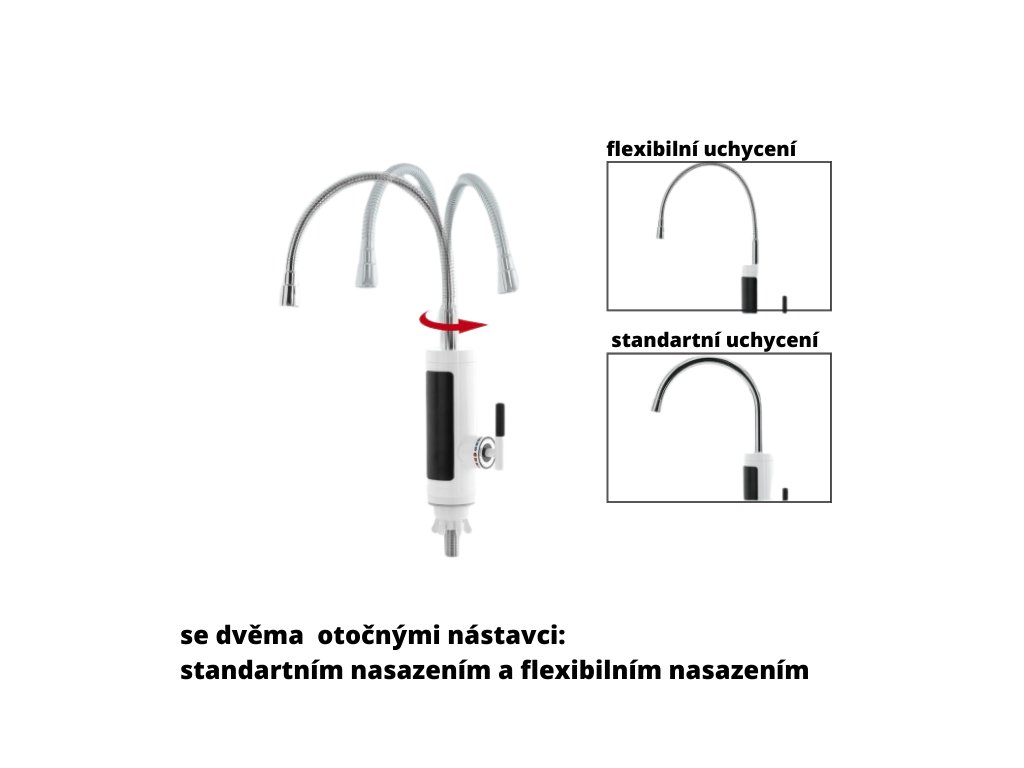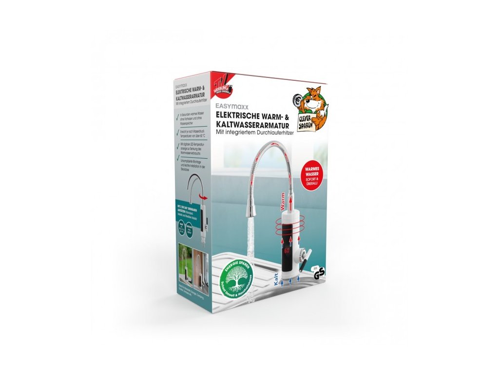 - Elektrická batéria na teplú a studenú vodu EASYmaxx má dva výmenné nástavce na kohútik: štandardný a flexibilný nástavec, oba je možné otáčať o 360 °