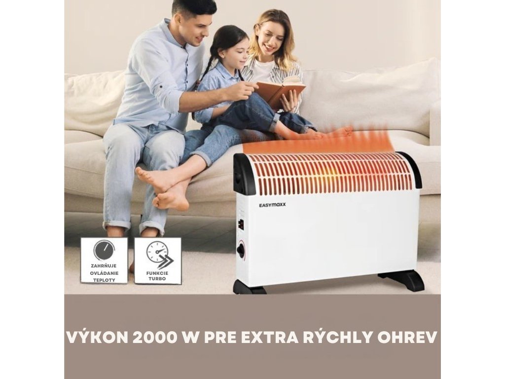 - Výkon 2000 W : Zaisťuje rýchle zahriatie miestnosti, čo je ideálne pre chladné zimné dni.