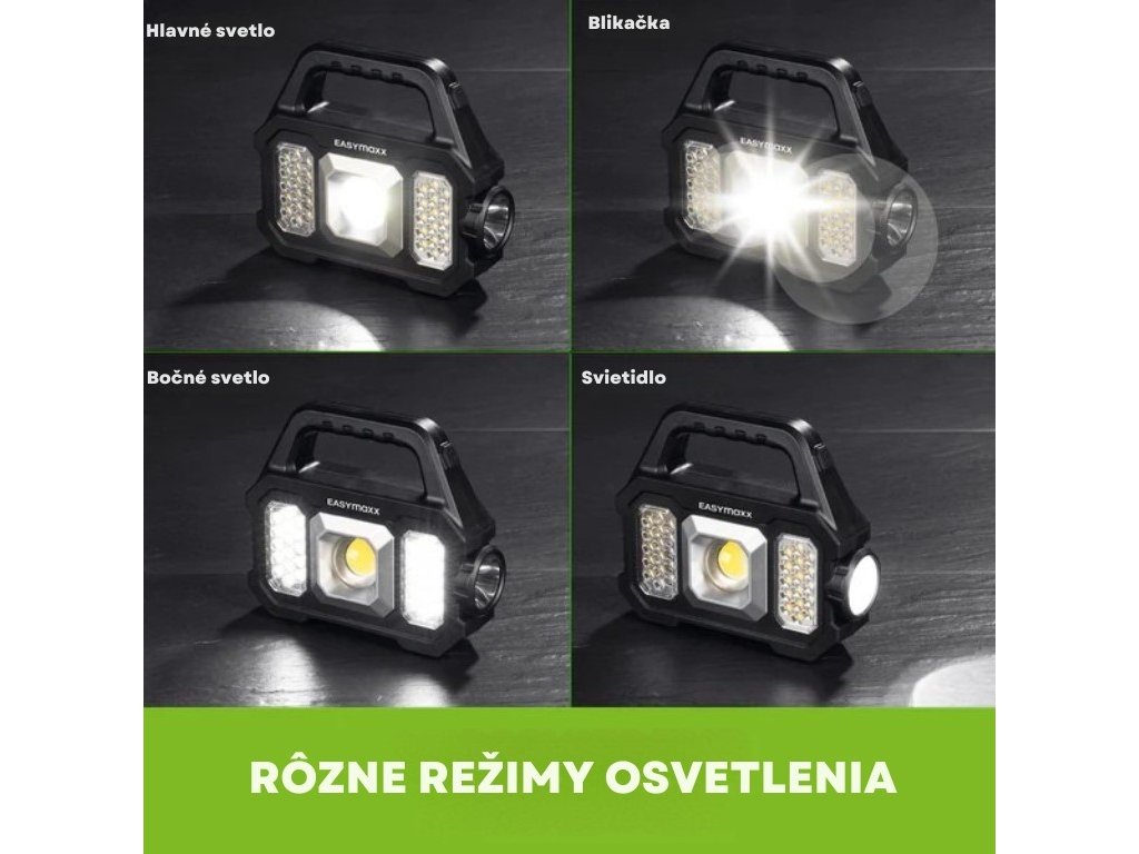 Svietidlo EASYmaxx ponúka 3 v 1 : jasné COB bodové svetlo, stmievateľné COB bočné svetlo a jasnú XPG svietidlo. Vďaka šiestim rôznym režimom osvetlenia si môžete vybrať to pravé svetlo pre každú situáciu. Či už potrebujete silné svetlo pre prácu alebo jemné osvetlenie pre relaxáciu, toto svietidlo vás nesklame .