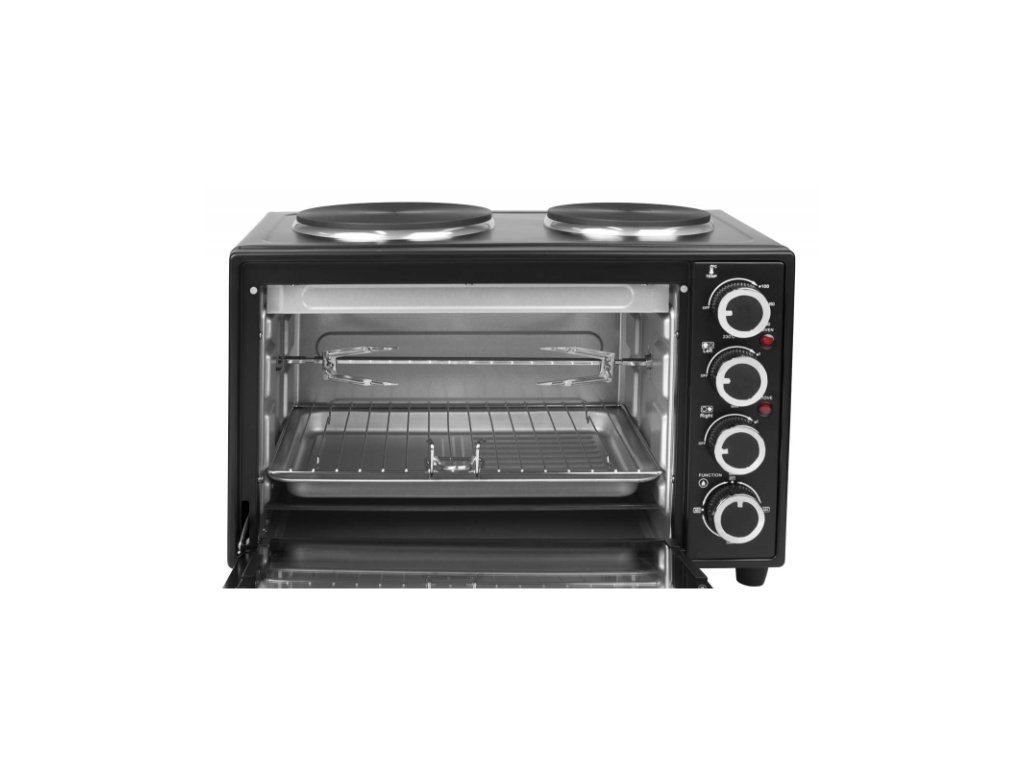 Elektrická rúra Orava EC-322 s dvoma platničkami, grilom a otočným ražňom