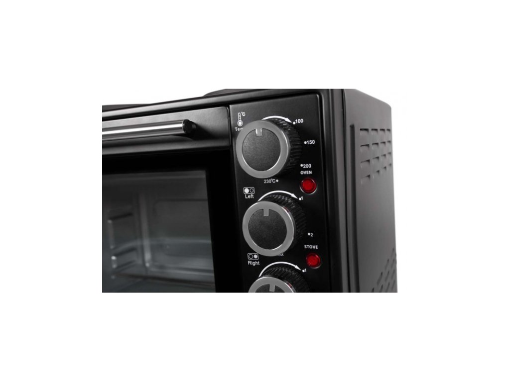 Prednosťou elektrickej rúry s dvojvaričom je samostatné regulovanie teploty jednotlivých dosiek na varenie a možnosť plynulého nastavenia teploty od 100 do 230°C. Súčasťou balenia je aj rošt na grilovanie a panvica na odkvapkávanie oleja.