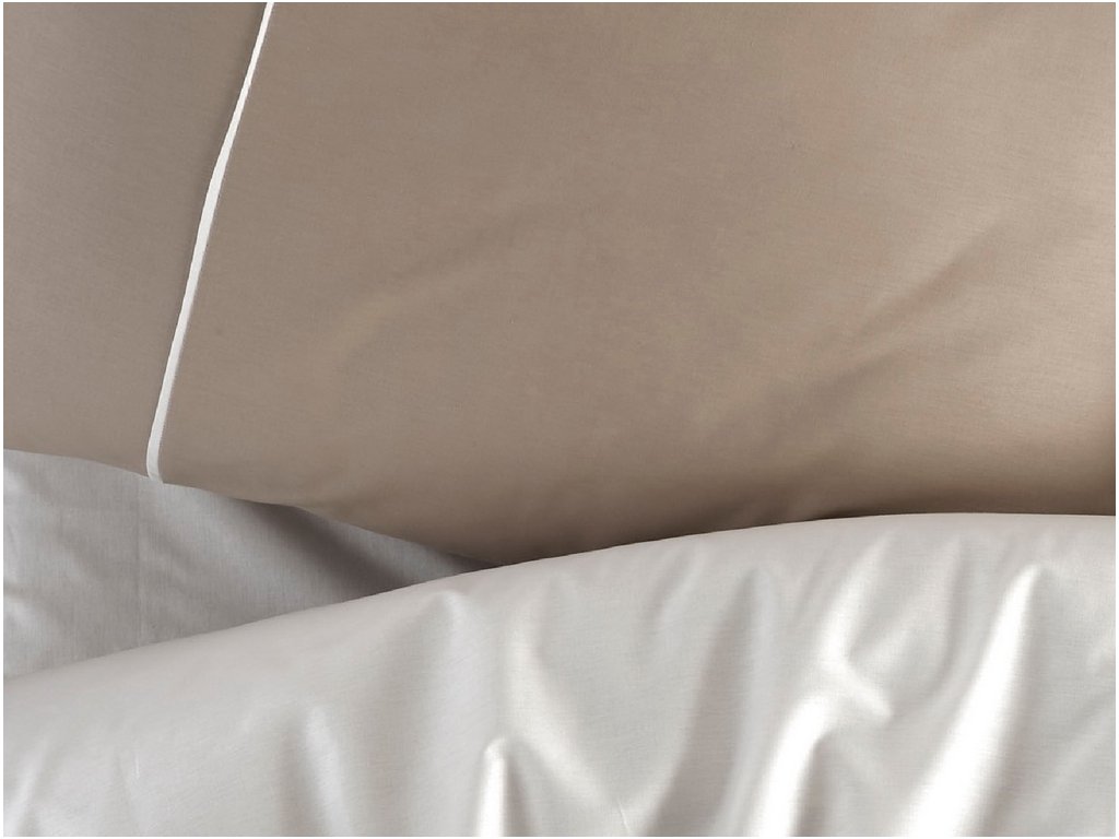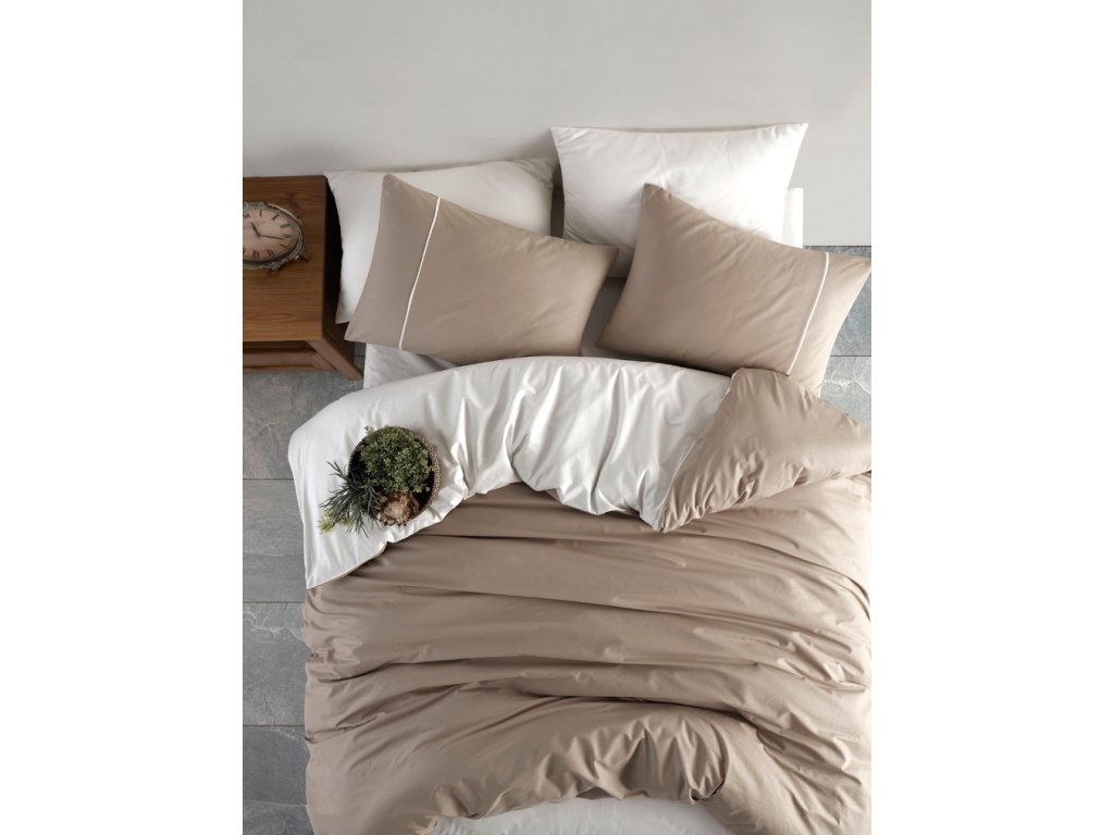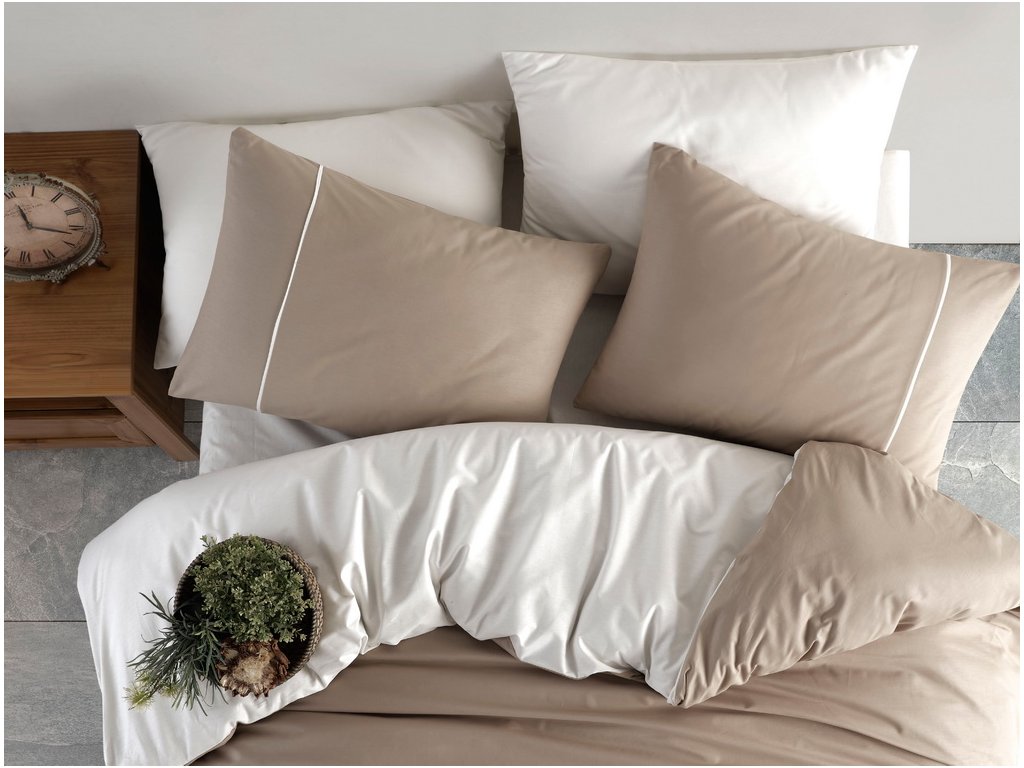Moderné a svieže obliečky zo 100% bavlny Renforcé. Nevšedne nápadité hladké, jednofarebné, napriek tomu dvojfarebné obliečky. Oku lahodiaca farebná kombinácia, ktorá poteší ako ženy, tak mužov. Obliečka na perinu je z jednej strany béžová, z druhej biela. Vankúše sú z oboch strán béžové s elegantným bielym prúžkom.
