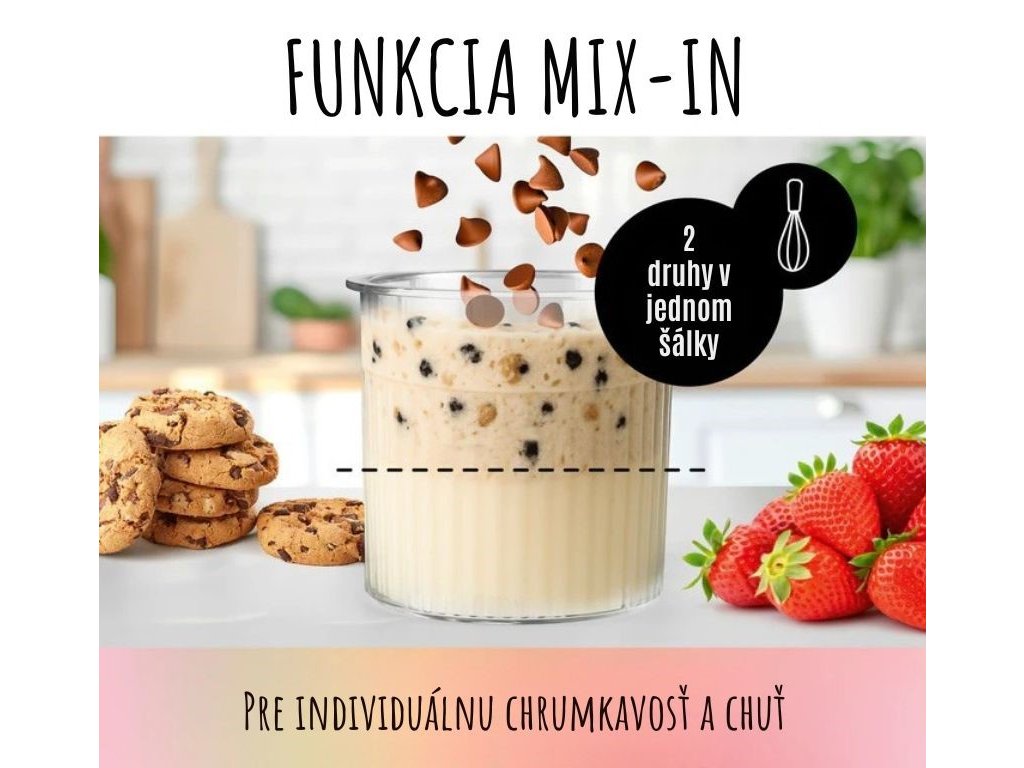 GOURMETmaxx SmoothUp ponúka intuitívne ovládanie prostredníctvom LED displeja s časovačom, čo zaisťuje jednoduchú a rýchlu prípravu vašich obľúbených pochúťok. Mix-in funkcia umožňuje pridávať do zmrzliny orechy, čokoládu či iné ingrediencie, čím vytvoríte jedinečné chuťové kombinácie. Navyše, vďaka mix-in režimu , môžete v jednom tégliku kombinovať až dve rôzne príchute.