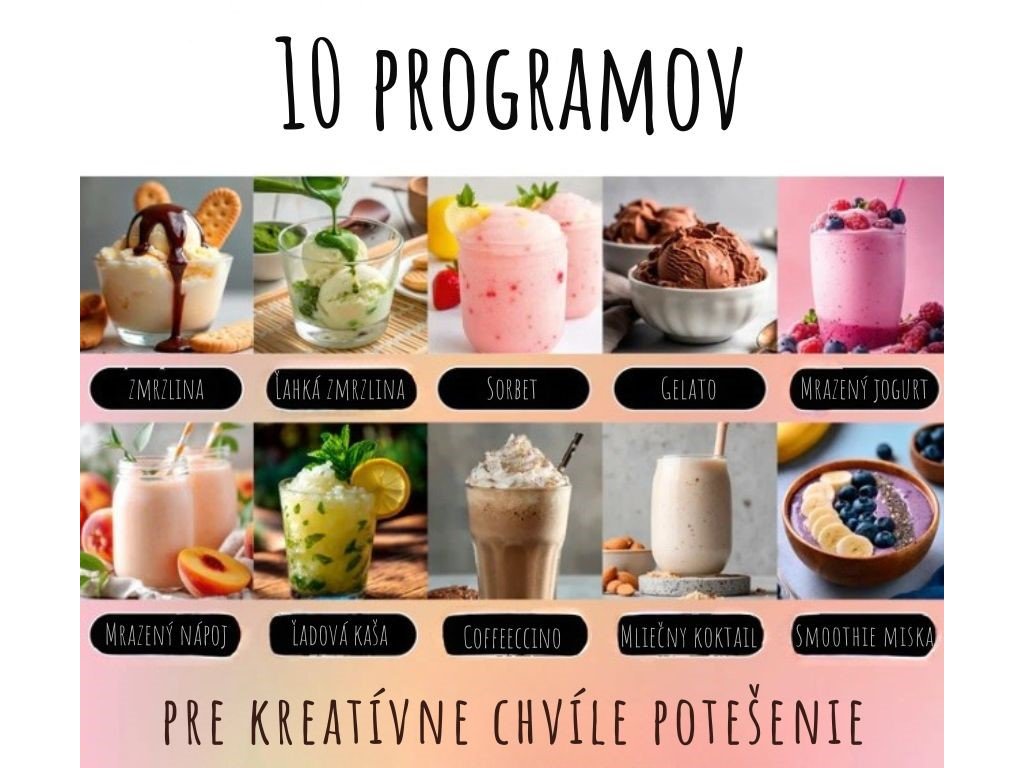- Rýchla príprava : Dezerty pripravíte v priebehu 2–5 minút (bez doby mrazenia).