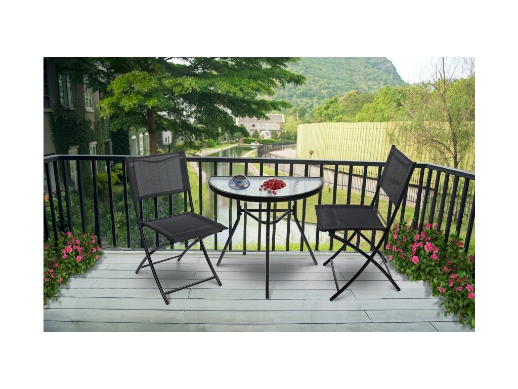 Najlacnejšie aj lacný terasový alebo tiež balkónový set z ušľachtilej ocele pre Vašej záhradu, terasu alebo balkón. Výhoda tohto setu je polkruhový stôl, môžete teda priraziť k stene a zaberie minimum miesta. Rovnako tak ako dvojica stoličiek, ktoré sú skladacie. Zostavy máme skladom k okamžitému odoslanie a za najnižšiu cenu s lacnou dopravou až k Vám domov alebo na výdajné miesta.