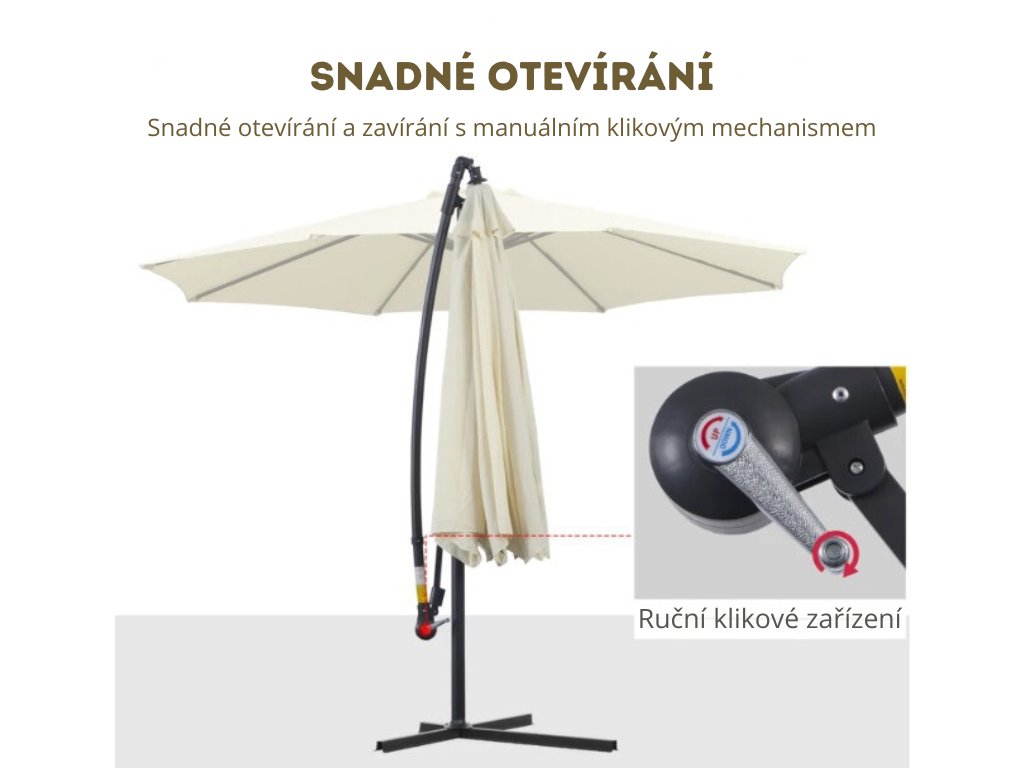 Samotné zatváranie a otváranie slnečníka je také jednoduché a ľahké, že to zvládnu aj deti či ženy a to behom pár sekúnd. Kovová kľučka aj vnútorné prevody zaistia, že mechanizmus sklápania Vám vydrží naozaj, naozaj dlho.