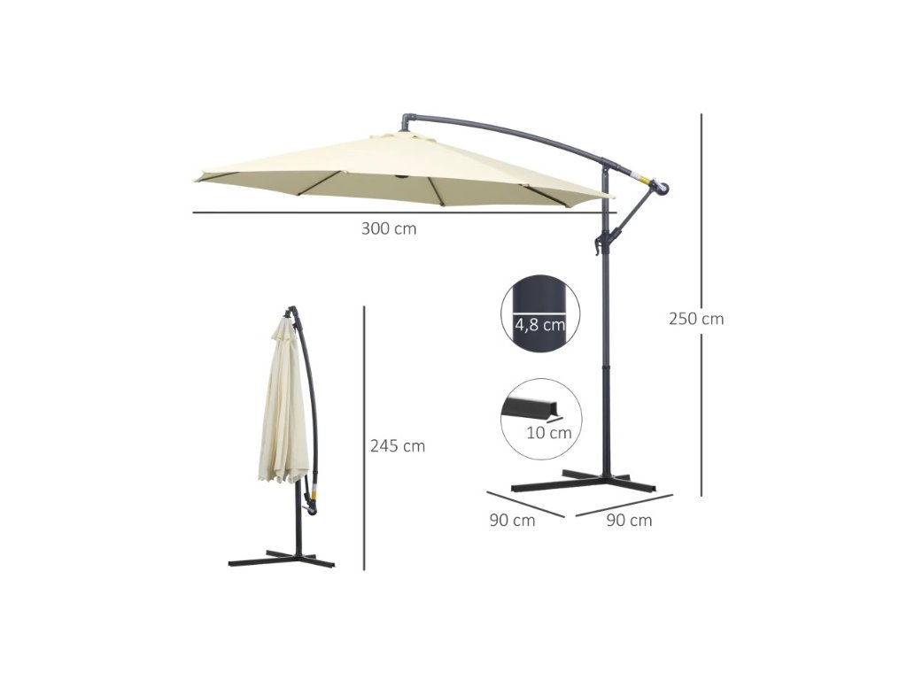 Exkluzívny slnečník s priemerom 3 m má pevnú oceľovo-hliníkovú konštrukciu s bočným kĺbom, ktorý umožňuje nastaviť uhol tienenia podľa vašej požiadavky. Poskytne vám príjemnú ochranu pred slnečným žiarením a navyše je veľmi elegantný a bude ozdobou vašej záhrady či terasy. Jedine u nás s dodaním do max 48 hodín a za nenižšiu cenu, kedy cena nie je rozhodne na úkor kvality.