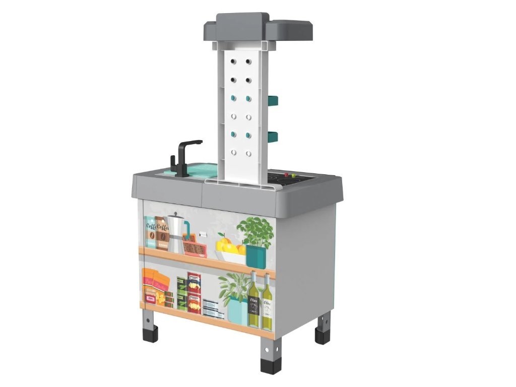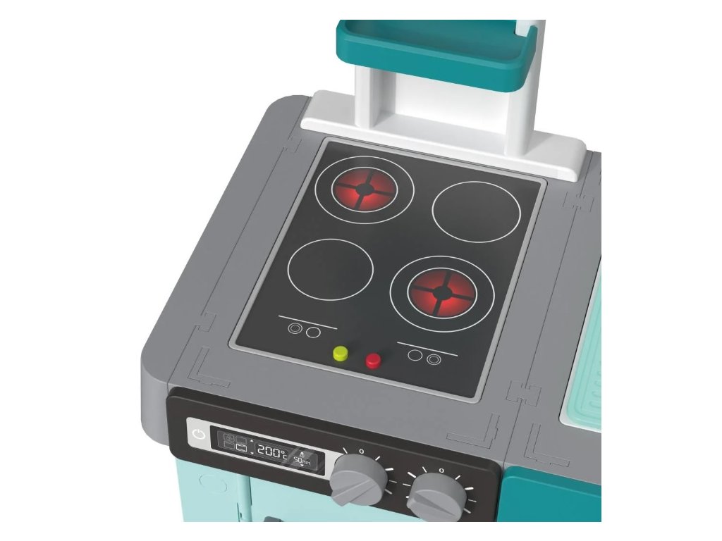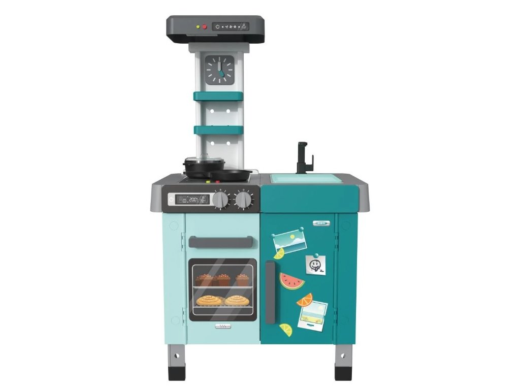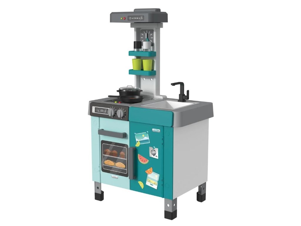 Naša detská kuchynka Funny je vybavená mnohými funkciami, ktoré ju odlišujú od ostatných. Obsahuje štyri platničky na batérie s LED osvetlením a realistickými zvukmi varenia a vyprážania. Deti budú nadšené z digestora so svetlom a zvukom a otočného regulátora teploty, ktorý vydáva zvuk. Kuchynka tiež ponúka drez s otočným vodovodným kohútikom, čo pridáva na autentickosti hry.