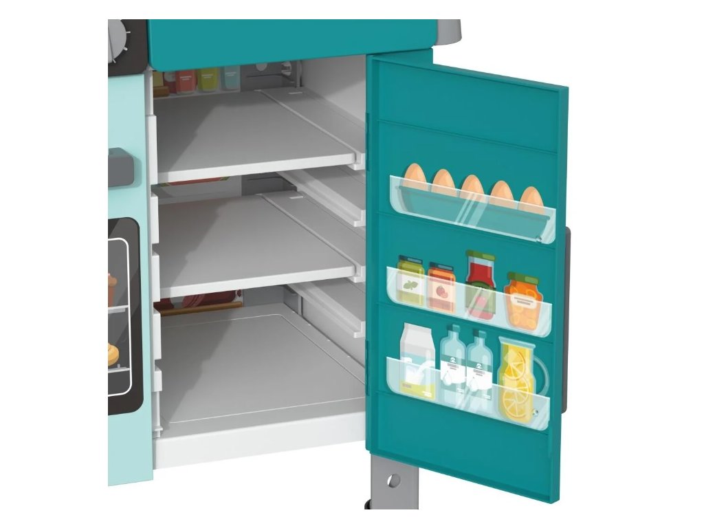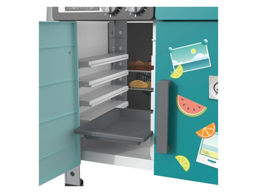 Kuchynka má rozmery 56 x 100 x 37 cm (Š x V x H) a váži 3,9 kg, čo z nej robí ideálnu voľbu pre detské izby. Vďaka kompaktným rozmerom sa zmestí do väčšiny priestorov a zároveň poskytuje dostatok miesta na hru.