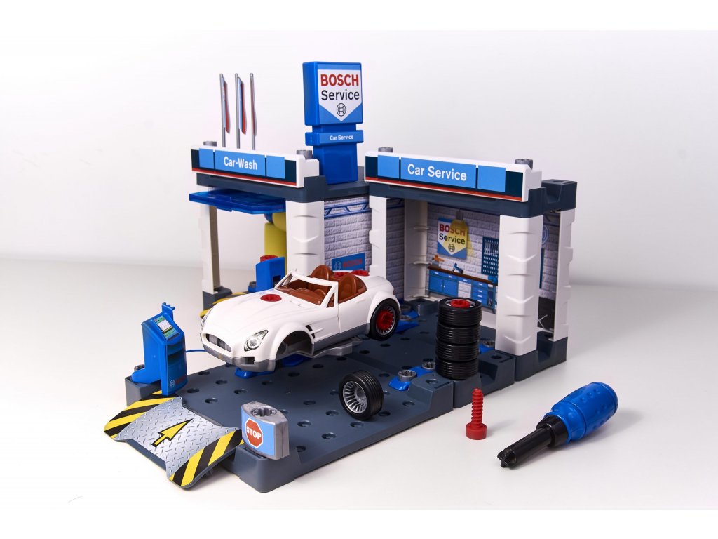 Tak to je veľká paráda! Krásna stavebnica autodielne s umývačkou značky Bosch od známeho nemeckého výrobcu hračiek Klein. Nielen, že Vášmu chlapčekovi sa bude páčiť celý set aj sám postaviť, ale dlhé hodiny sa zabavia samotnou hrou, kedy vďaka veľkému príslušenstvu môže prezúvať pneu pri dodanom vozidle, vozidlo rozobrať, dať na funkčný servisný hever či umyť v umývačke. Tento produkt máme zaručene skladom na okamžité odoslanie a za najnižšiu cenu v SR!