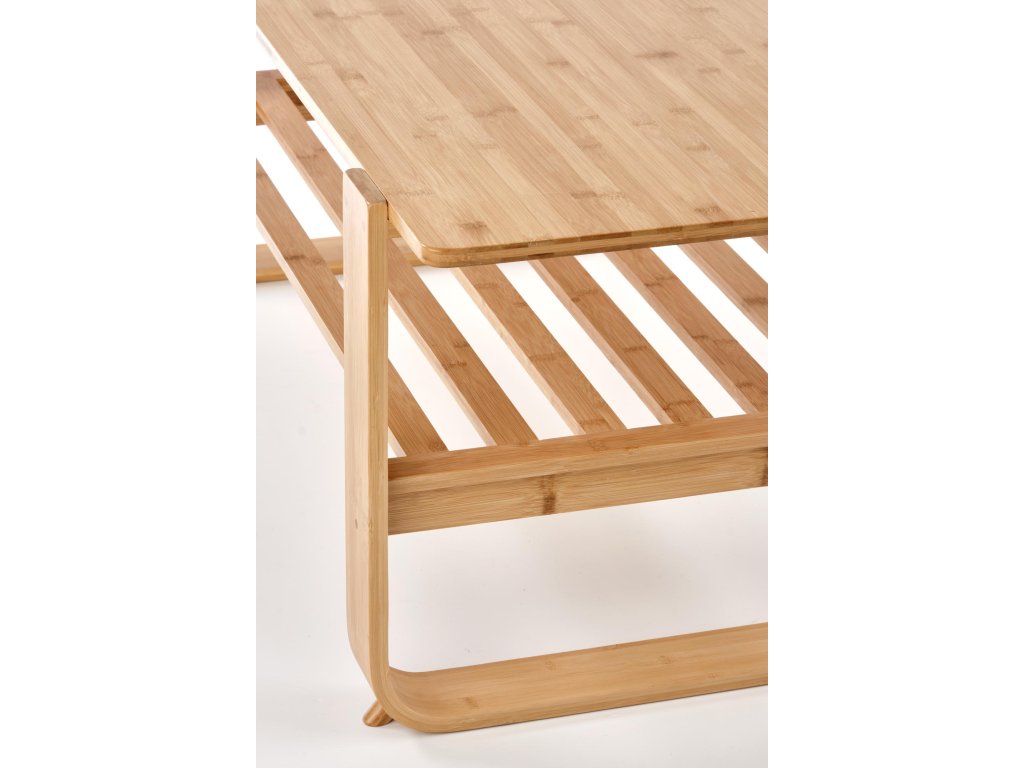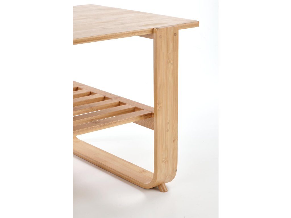 Konferenčný stolík SPINOLA sa skvele hodí do obývacej izby. Stolík je vyrobený z masívneho bambusového dreva v prírodnej farbe, ktorý má veľkú pevnosť. Zaujímavým prvkom nábytku je spodná polička z drevených dosiek. Tu si môžete odložiť časopis, ovládač alebo knihy. Zaoblené nohy zaručujú pevnosť a stabilitu stolíka.