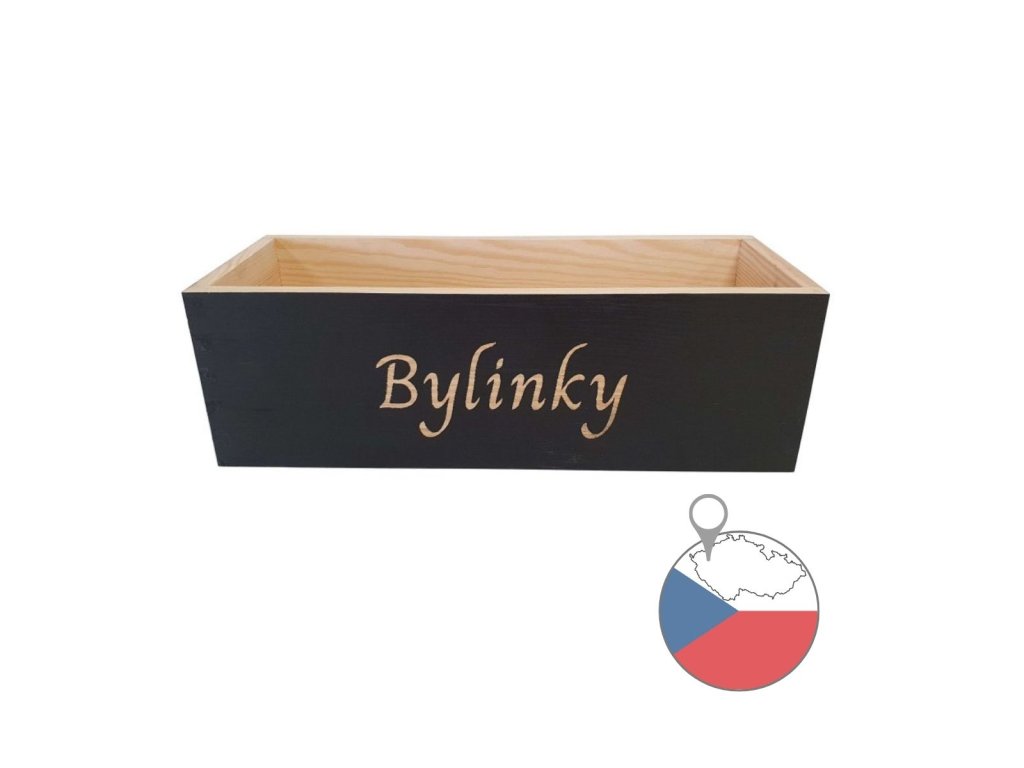 Krušnohorský nábytok BK1 Drevená debnička na bylinky z masívneho dreva 34 x 13 x 11 cm čierna - s nátěrem