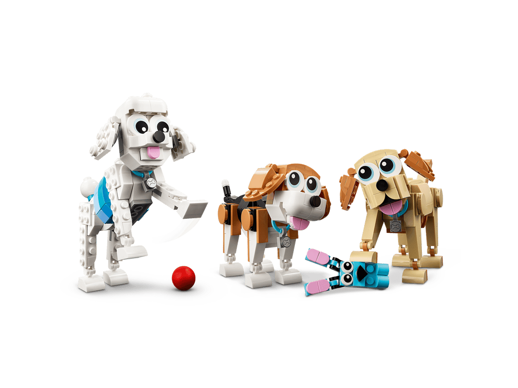Táto stavebnica ponúka viac ako bežné hranie. S LEGO Creator 3 v 1 môžete postaviť bígla, pudla a labradora, ktoré je možné premeniť na miniatúrneho bradáča a mopsíka alebo na huskyho a dlhosrstého jazvečíka. Pohyblivé modely s hlavami, chvosty a ušami pridávajú na realistickosti a umožňujú deťom vytvárať rôzne scenáre a príbehy.