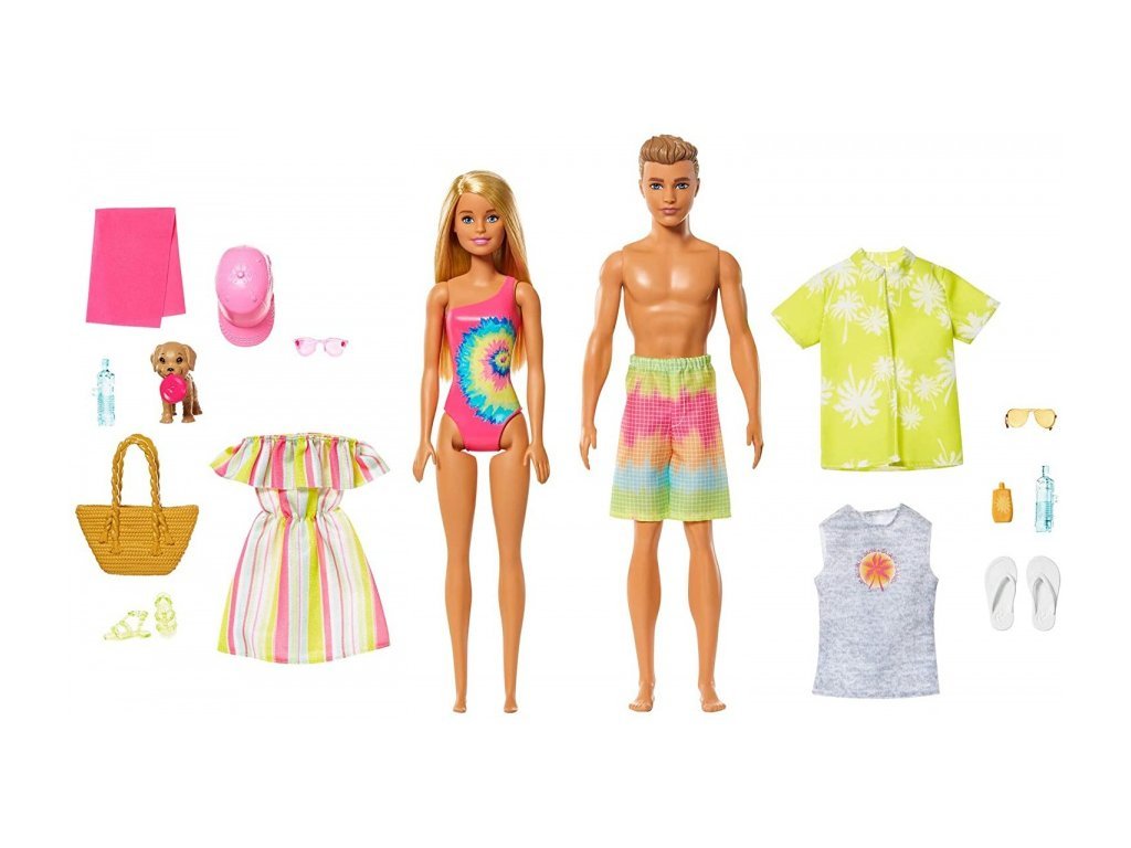 - Po zábave pri kúpaní sa bábiky pripravujú na výlet. Barbie môžete obliecť do pruhovaných šiat a Kena do cool košele