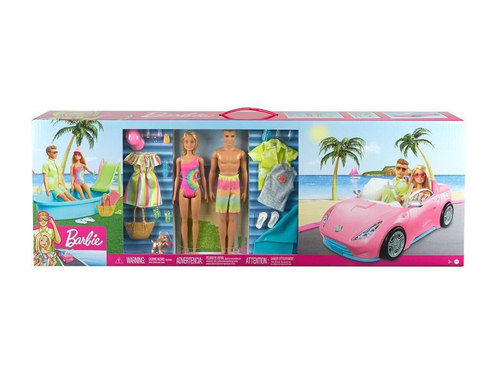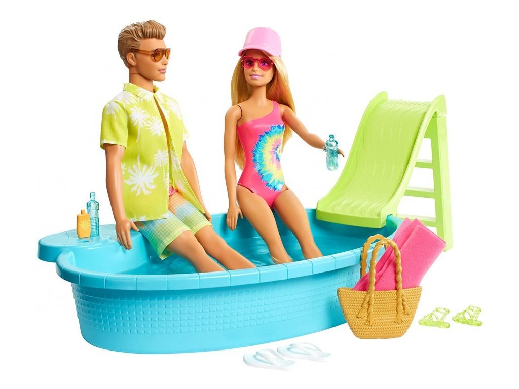 - Táto darčeková sada s Barbie a Kenom, bazénom so šmykľavkou a cool kabrioletom zaistí hodiny zábavy