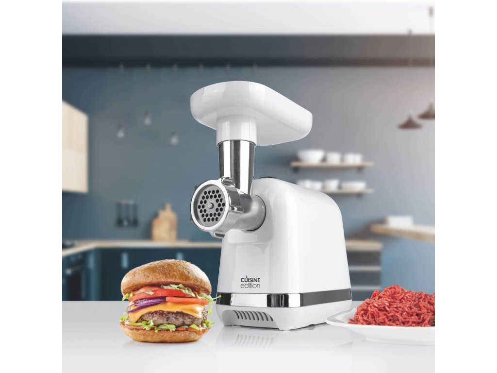Hľadáte spoľahlivého pomocníka na prípravu domácich mäsových špecialít? Predstavujeme vám výkonný elektrický mlynček na mäso MaxxMee Cuisine Edition s vysokým výkonom 1300 W , ktorý zvládne spracovať až neuveriteľných 1,5 kg mäsa za minútu !
