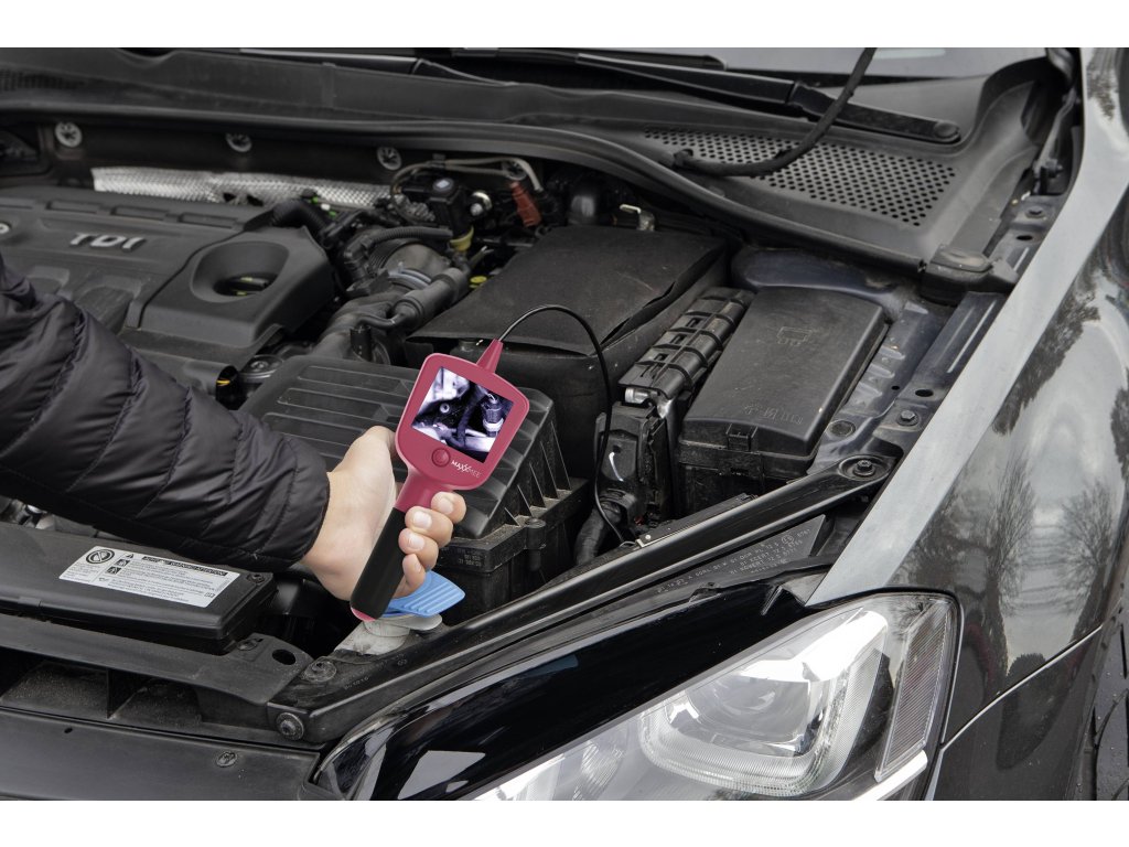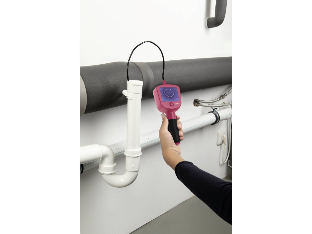 120 cm dlhý flexibilný kábel kamery si prerazí cestu najužším priestorom a integrovaná digitálna kamera prenáša všetko "živo a farebne" na LCD monitor v ručnej časti. Na konci kábla s kamerou je umiestnené LED svetlo pre jasnejší obraz v tmavých častiach prezeraného objektu.