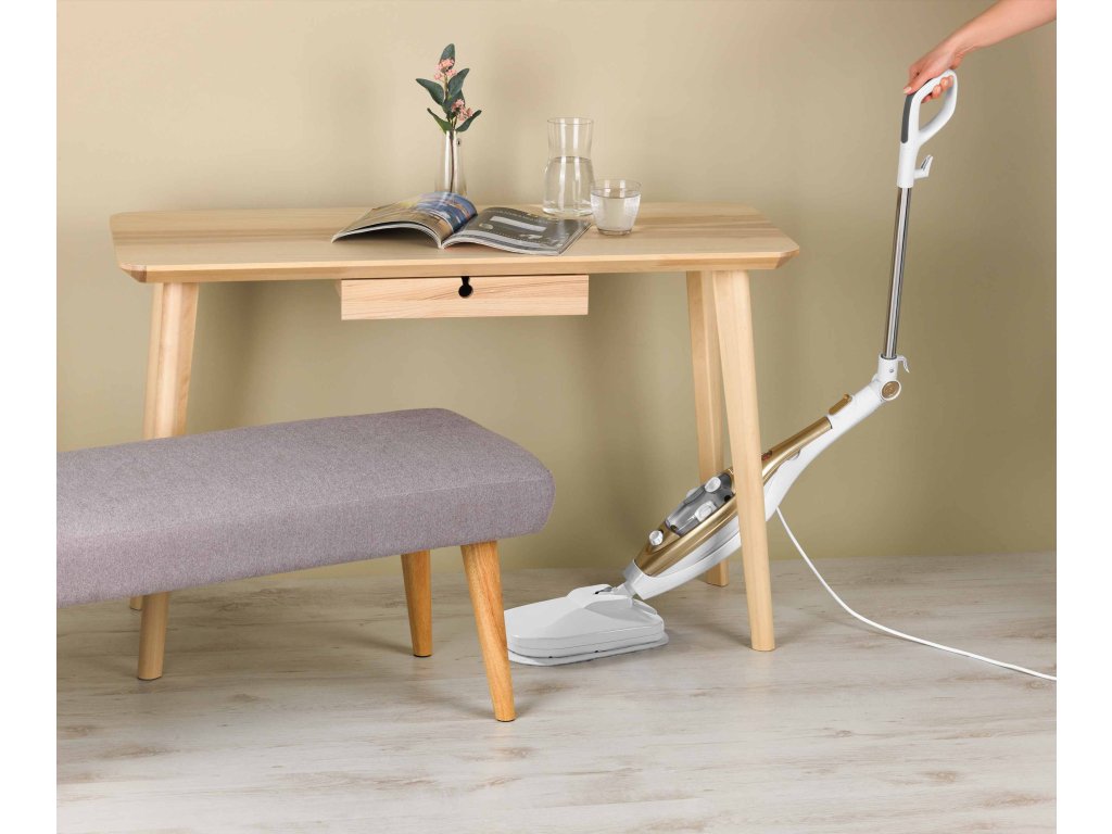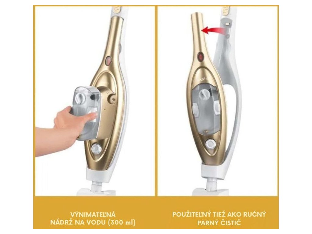Praktický parný mop s ohybným kĺbom od nemeckej značky MaxxMee umožňuje ľahký prístup pod nábytok a vďaka 1000 vibráciám za minútu eliminuje potrebu zdĺhavého drhnutia. Prístroj, ktorý zničí až 99,9% všetkých baktérií, vírusov či roztočov , ponúka pohodlné upratovanie bez použitia chemikálií s vodnou nádržkou s objemom 300 ml. Viacúčelové zariadenie je možné využiť aj ako ručný parný čistič, na čistenie kobercov, okien alebo ako naparovač odevov .
