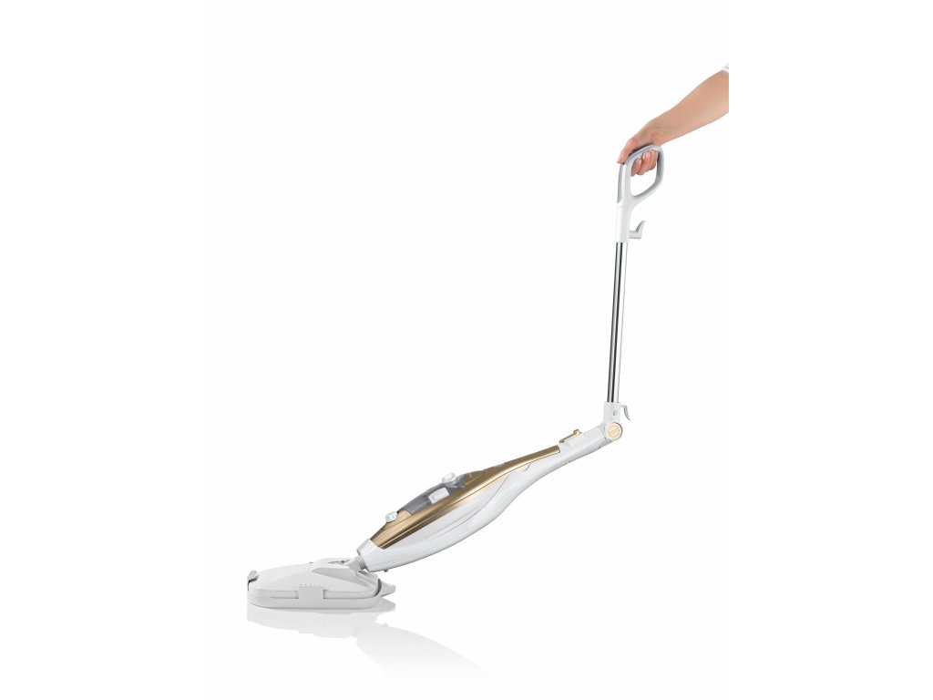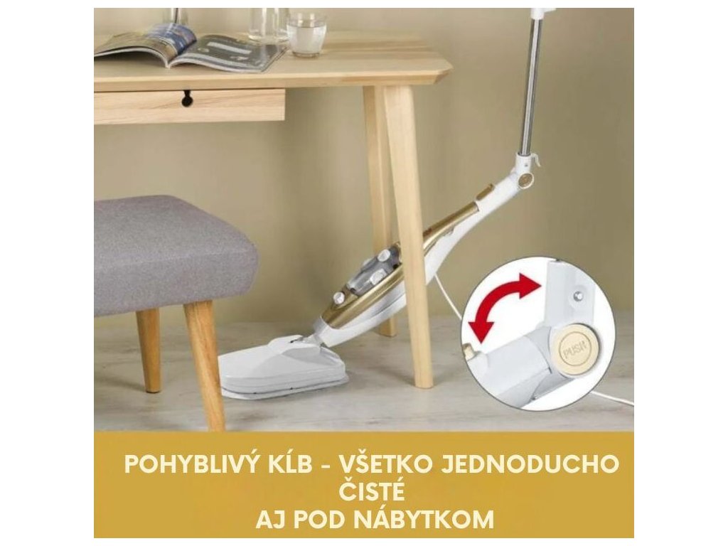 Praktický parný mop s ohybným kĺbom sa nielen ľahko a jednoducho dostane pod najrôznejší nábytok, ale vďaka až 1000 vibráciám za minútu odpadá zdĺhavé drhnutie! Nechajte prístroj pracovať za Vás. Jednoducho nasaďte handričku z mikrovlákna na podlahu alebo klasickú handru na podlahu, naplňte nádržku na vodu s objemom 300 ml, zapojte zariadenie a pohodlné upratovanie, ktoré zničí až 99,9 % všetkých baktérií, vírusov či roztočov môže začať.