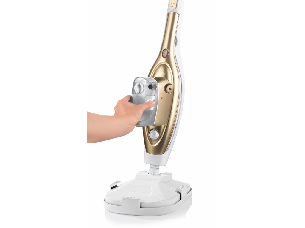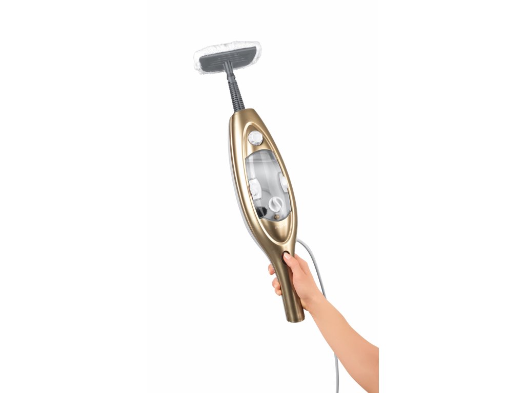 Vibračný parný mop môžete počas krátkej doby použiť na čistenie podláh parou s teplotou 100 ° C - bez akýchkoľvek chemikálií . Flexibilný všestranný prístroj je vhodný aj ako ručný parný čistič, na čistenie kobercov či okien alebo ako naparovač odevov.