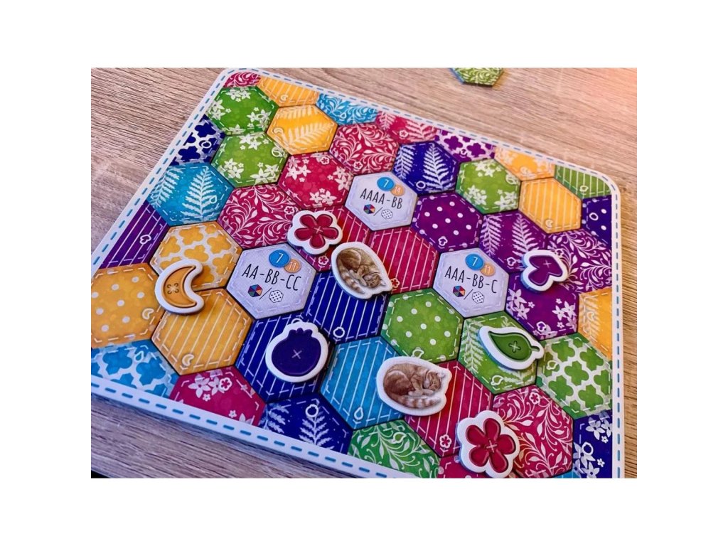 Pri skladaní pestrofarebných šesťuholníkových dielikov do dečiek si hráči precvičia svoje strategické myslenie a kreativitu. Hra kombinuje tile-placement s bodovaním za splnené úlohy a prišité gombíky, čo poskytuje každej partii jasný cieľ a taktické voľby. Variabilné úlohy a rozloženie políčok zaručujú dlhodobú znovuhrateľnosť.