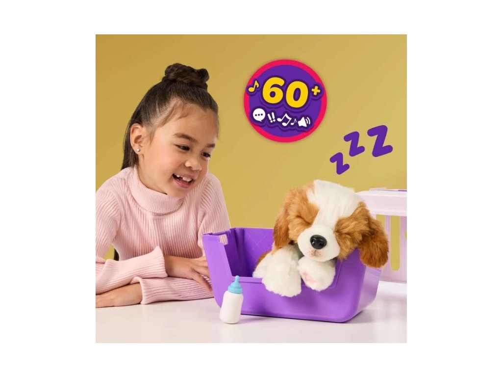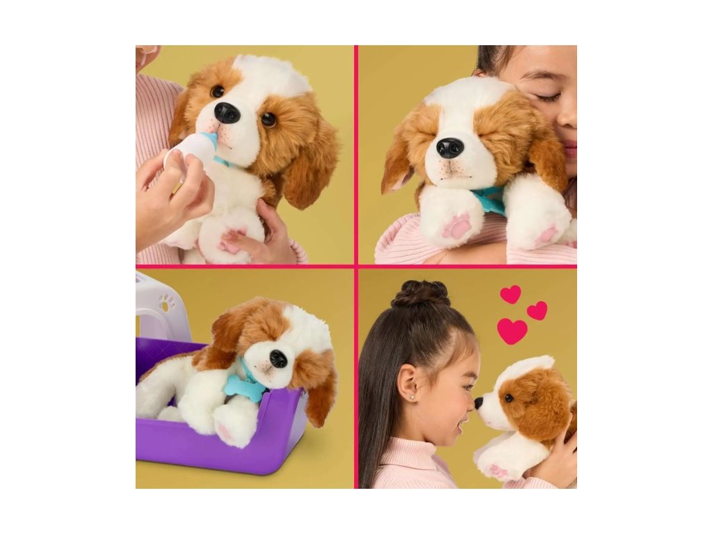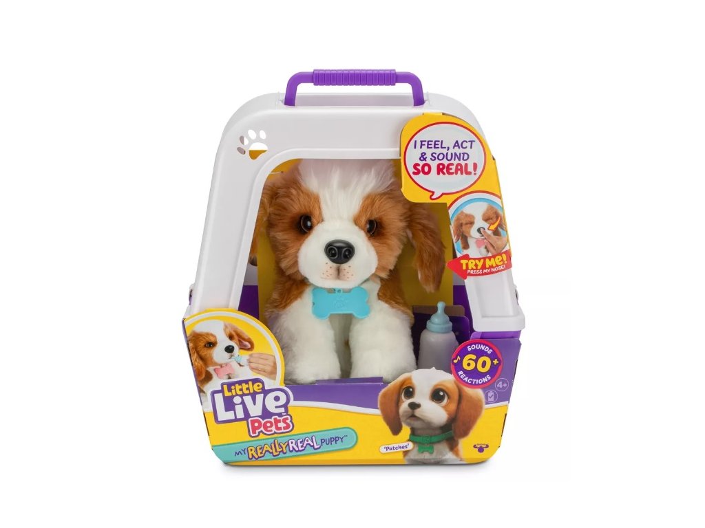 My Really Real Puppy - Patches The Beagle je neuveriteľne realistické interaktívne šteniatko s najmäkším kožúškom a roztomilými žmurkajúcimi očami . Reaguje na dotyk viac ako 60 zvukmi a reakciami a má interaktívnu fľašu na kŕmenie. Sada obsahuje prenosný box , ktorý sa môže transformovať na pelech , ideálny pre deti, ktoré chcú mať svojho plyšového priateľa vždy pri sebe. Vhodné pre deti od 4 rokov , skvelý darček pre malých milovníkov zvierat.