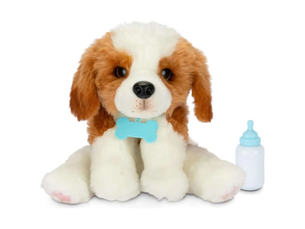 Toto šteniatko bude vaším verným priateľom navždy . Je tak realistické s kožúškom jemným na dotyk, žmurkajúcimi očami a realistickými labkami , ktoré robia tohto interaktívneho psíka naozaj skoro pravým! Zoznámte sa s týmto Beagelom jemným stlačením jeho nosa , a on vám olízne ruku alebo na ňu zavonia . Pohlaďte ho na hlave alebo chrbte a on začne robiť šťastné zvuky a žmurkať očami . Čím viac ho budete hladkať, tým viac bude nadšený ! Beagle má rád, keď ho kŕmite z jeho fľaše - jemne pritlačte fľašu k jeho ústam a počúvajte, ako zatvára oči a vydáva roztomilé zvuky kŕmenia .