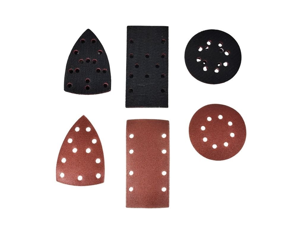 • Príslušenstvo: 2 brúsne listy pre každý nadstavec (zrnitosť 80 / 240), 1 adaptér pre externé odsávanie prachu, 1 šesťhranný kľúč