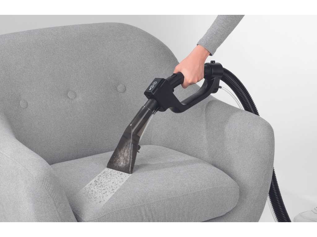 Vysávač používajte podľa potreby na koberce, všetky tvrdé podlahy alebo ako šikovný čistič kobercov, čalúnenie, pohoviek či na autosedačky, vankúše alebo podušky k záhradnému nábytku. . Vďaka funkcii rozprašovania , ktorá sa ovláda priamo na rukoväti, môžete vysávačom cielene striekať vodu alebo čistiaci roztok a zároveň ho opäť vysať sacím výkonom 17 kPa . Týmto spôsobom môžete odstrániť aj odolné a zaschnuté škvrny - s krátkou dobou schnutia.