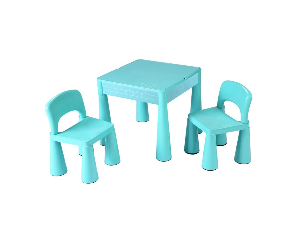 Detská sada New Baby obsahuje stôl a 2 stoličky. Stolček je veľmi praktický, otočením hornej dosky sa stane základom pre stavanie kociek stavebnice Lego Klasik aj Lego Duplo. Pod hornou doskou je priestor na uskladnenie hračiek, kresliacich potrieb, a pod. Do priestoru je možné po odstránení hornej dosky tiež naliať trošku vody a dieťa si naplno užije svoje obľúbené vodné radovánky alebo je možné v tomto priestore vytvoriť mini pieskovisko.