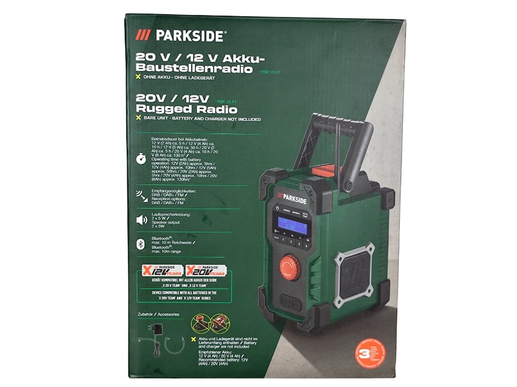 Parkside AKU stavebné rádio PBR 10 A1 – bez akumulátoru a nabíječky