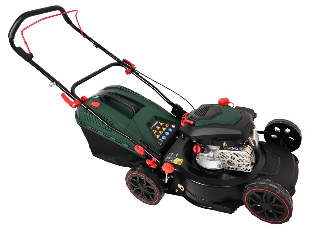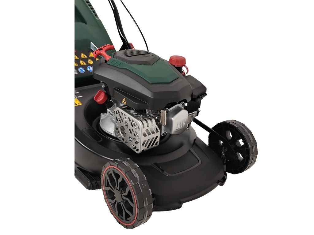 Srdcom kosačky je robustný 4-taktný benzínový motor s objemom 150 cm³ a výkonom 2,6 kW, ktorý zaisťuje optimálny výkon a efektivitu pri kosení. Vďaka štartovaciemu systému Primer a spoľahlivému lankovému štartéru je spustenie kosačky rýchle a bezproblémové. Ovládanie je ďalej uľahčené ergonomickým mäkkým držadlom, ktoré zaisťuje pohodlie aj pri dlhších prácach.