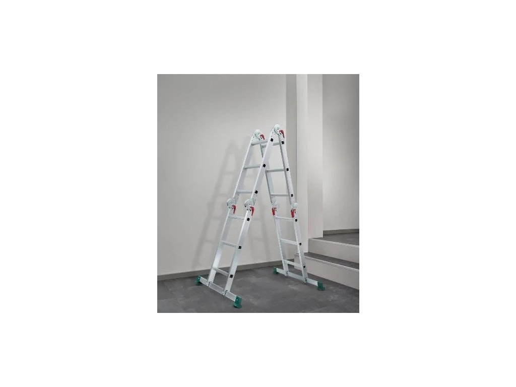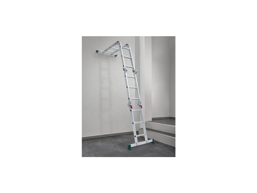Rebrík je možné ľahko premeniť na štafle, plošinu, oporný rebrík alebo prístavný rebrík s uhlovou funkciou. Vďaka tomu je ideálny na rôzne práce, od maľovania stien po údržbu strechy. S maximálnou pracovnou výškou až 4 metre, ktorú ponúka oporný rebrík, dosiahnete aj na ťažko prístupné miesta.