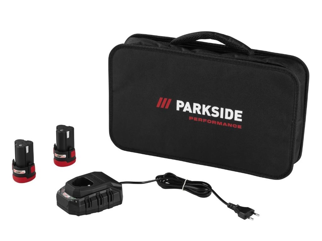 Parkside Performance Štartovacia sada AKU vŕtačka a rázový uťahovač PBSPA 12 E4 + PDSSAP 12 B1