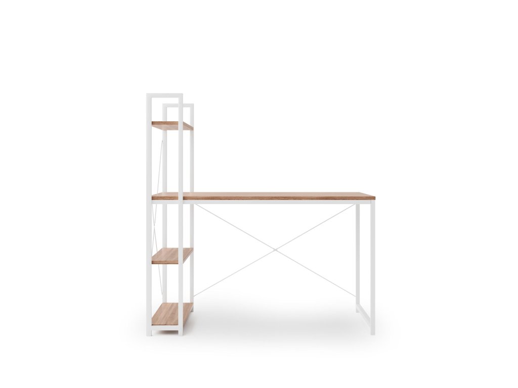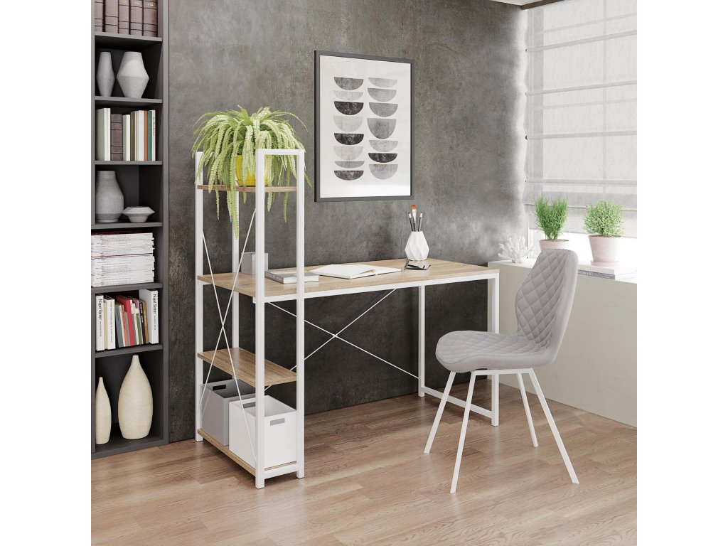 Písací stôl je vhodný do domácej pracovne, či modernej teenagerovskej izby. Veľmi vhodný bude aj do industriálne zariadenej kancelárie. Konštrukcia v kombinácii laminovanej drevotriesky a kovu, úložný priestor vo forme políc, pevná a pevná konštrukcia, to sú všetko nesporné výhody tohto písacieho stola v severskom štýle.