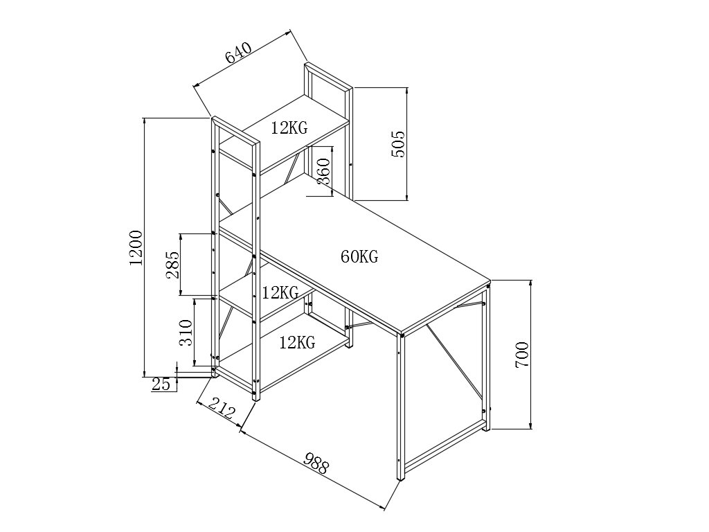 - Nosnosť stola je 60 kg, každá polica 12 kg